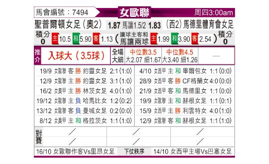 圣珀尔滕女足,马德里竞技女足,大乐透,排列三,双色球,预测,快乐8,福彩3D,利物浦,阿森纳,巴塞罗那,水晶宫,斯图加特,切尔西,广岛三箭,神户胜利船,纽卡斯尔联,诺丁汉森林,皇家马德里,本菲卡,马赛,马德里竞技,罗马,皇家贝蒂斯,马洛卡,阿斯顿维拉,毕尔巴鄂竞技,那不勒斯,多特蒙德,国际米兰,西班牙人,伯恩利,博洛尼亚,埃弗顿,尤文图斯,比利亚雷亚尔,莱万特,法兰克福,里尔,巴伦西亚,富勒姆,塞维利亚,狼队,布莱顿,巴列卡诺,尼斯,AC米兰,勒沃库森,奥萨苏纳,曼城,西汉姆联,都灵,摩纳哥,TBD,热那