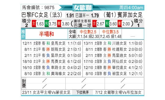 [欧女杯] 巴黎FC女足vs本菲卡女足